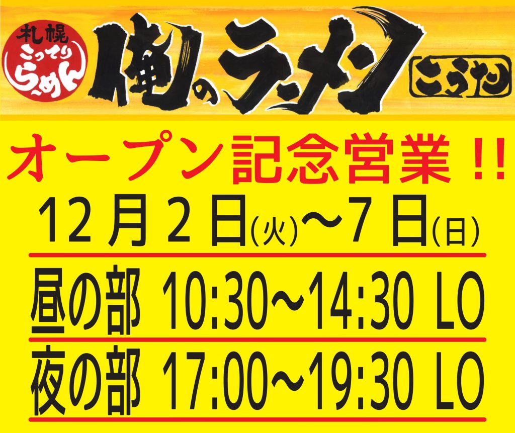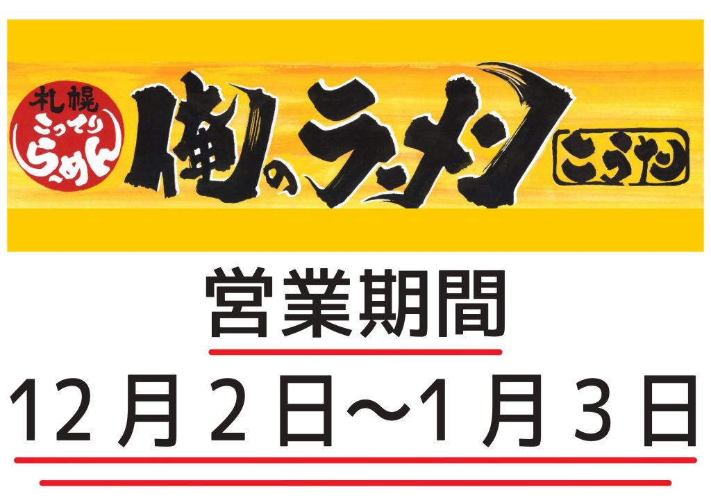 12/2(火)からは、佐渡金山ラーメン茶屋 第7弾「俺のラーメンこうた」がオープンいたします!!