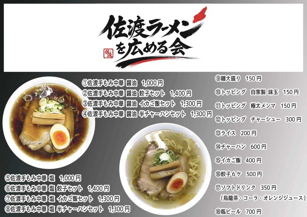佐渡金山ラーメン茶屋 第8弾「佐渡ラーメンを広める会」が出店決定!!メニューを公開いたします。