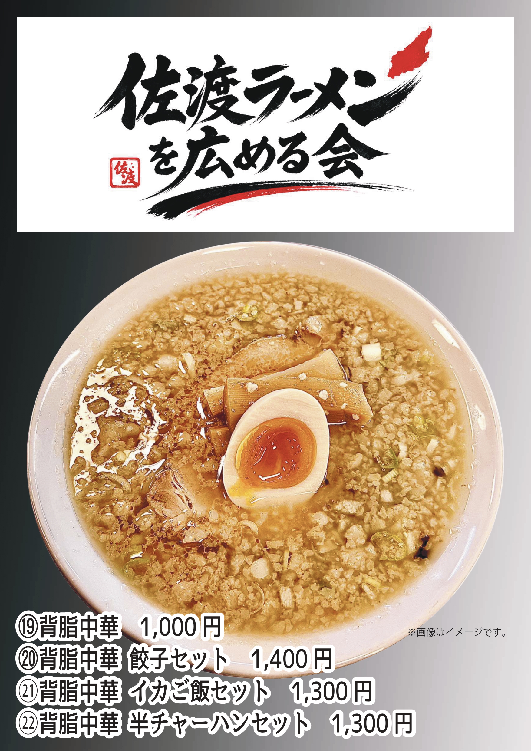 大好評いただいている「佐渡金山ラーメン茶屋 佐渡ラーメンを広める会」で、新メニュー『背脂中華』販売開始!!