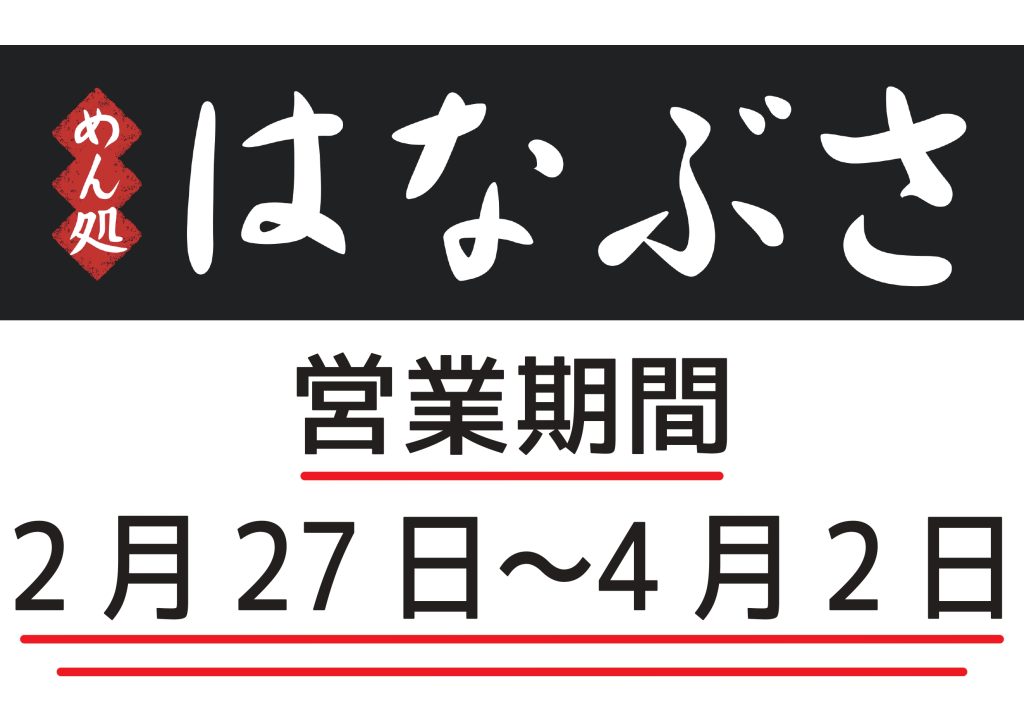 2/27本日、第9弾「めん処 はなぶさ」10時よりオープン!!